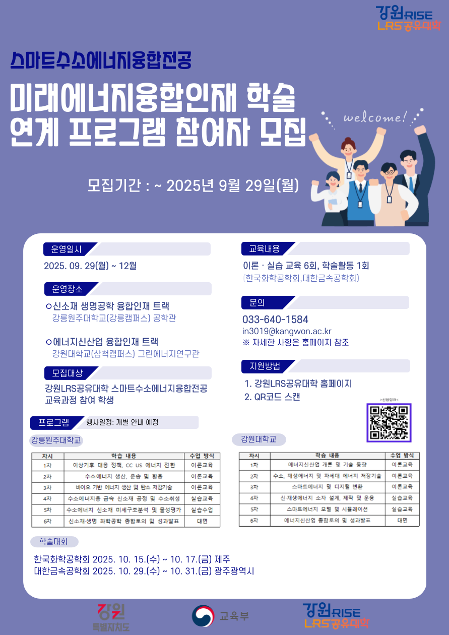 [강원LRS공유대학] 미래에너지융합인재 학술연계 프로그램 참여학생 모집 안내